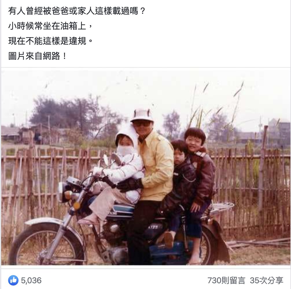 有人在臉書粉絲專頁分享了一張機車「四貼」照,詢問大家有沒有相同的回憶,竟「釣出」許多懷舊的網友,紛紛回覆表示小時侯也曾經有過這樣的經驗,覺得很懷念,勾出以前在交通法規還沒有很完善的時候,大家都曾有過的回憶呀。