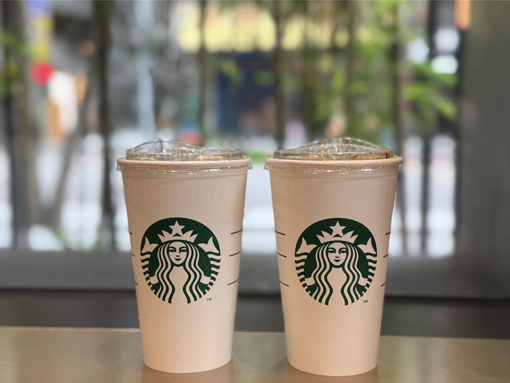 星巴克推出4月1日買2杯大杯(含)以上容量/冰熱/口味皆一致的飲料,享第2杯半價。(朱世凱攝)