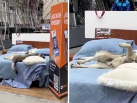 逛家具行遇到「試躺員」!浪浪開心躺床還翻肚打滾 店員反應超暖♡