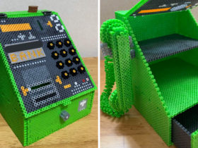 陪兒子在家玩拼了! 暖爸「1萬顆拼豆」神還原公共電話:還真的可以拿來打