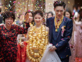 超級豪門!新娘頸掛「90只龍鳳手鐲」淡定微笑 網友驚呼:有練過頸椎
